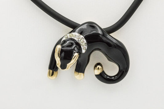 14K Black Enamel Panther Slide Pendant with White & Topaz Collar