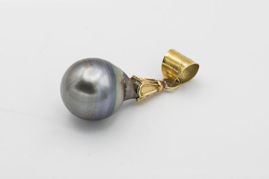 13mm Gray Baroque Pearl Pendant Set in 18K Yellow Gold